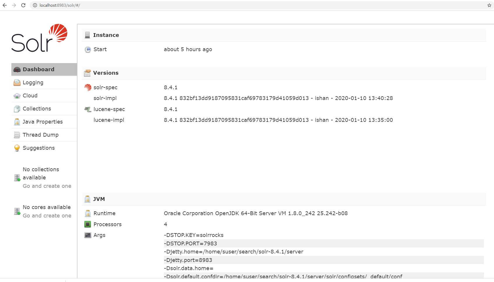 3. 지정한 포트로 접근하면 Solr admin 페이지 접근 가능
