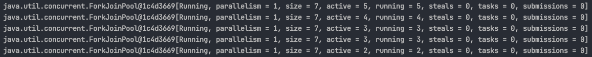 ForkJoinPool@[Running, parallelism = 2, size = 2, active = 1, running = 1,