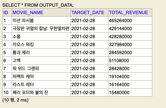 public class BoxOfficeItemProcessor implements ItemProcessor<BoxOfficeResult, List<OutputData>> {