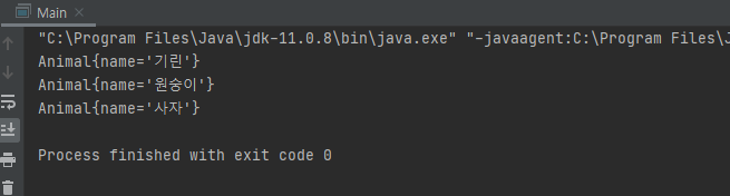 - Animal을 가진 클래스이다. 요소들을 하나의 집합체(Zoo)로 다루기 위해 Aggregate 인터페이스를 구현한다.
