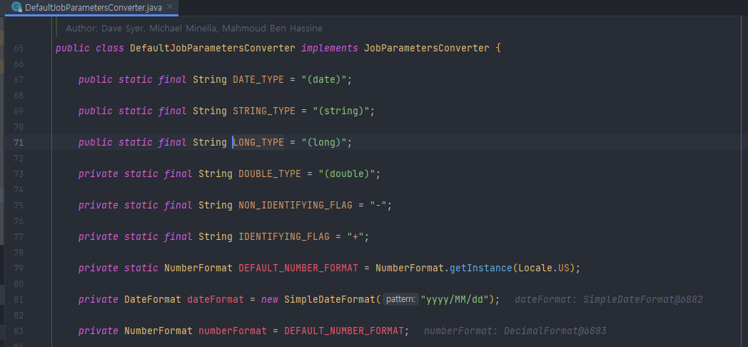 - Converter를 통해 JobParameters로 변환되며 key값 뒤에 타입을 명시해서 사용할 수가 있다.