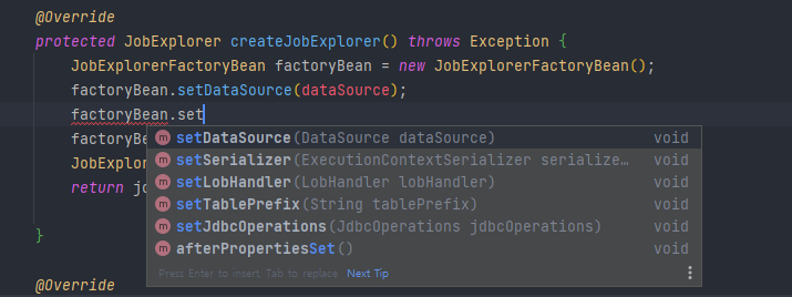 - JobRepositoryFactoryBean 등록을 위해 .afterPropertiesSet(), .getObject 메서드를 호출해야한다.