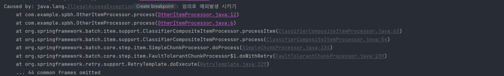 - 보면 OtherProcesser는 2번 실행되었는데 왜 skip limit가 초과했지? 3번째에 예외발생해야하는 것 아닌가라는 생각이 들수있다.