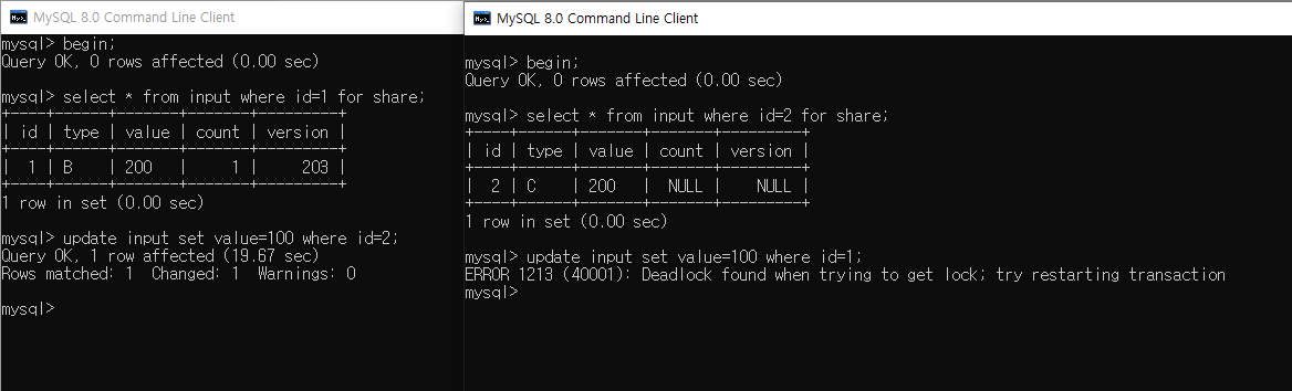 3. 서로 Shared Lock이 걸고 row 업데이트