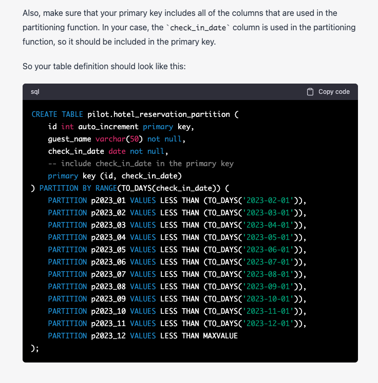 - 여기서 주의할 점은 아래 오류가 발생하는데 partition 조건에는 반드시 pk가 들어가야 한다.