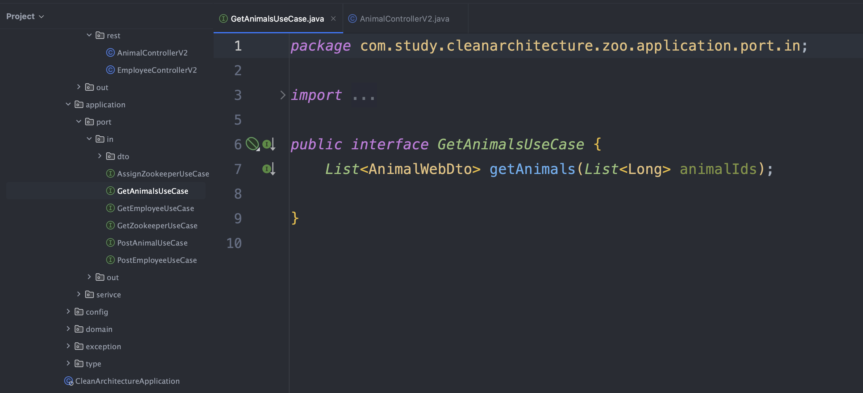 2. application.port.in UseCase & application.serivce Service : 요청받은 Animal ID들로 loadAnimalPort를 통해 Animal을 조회한다.