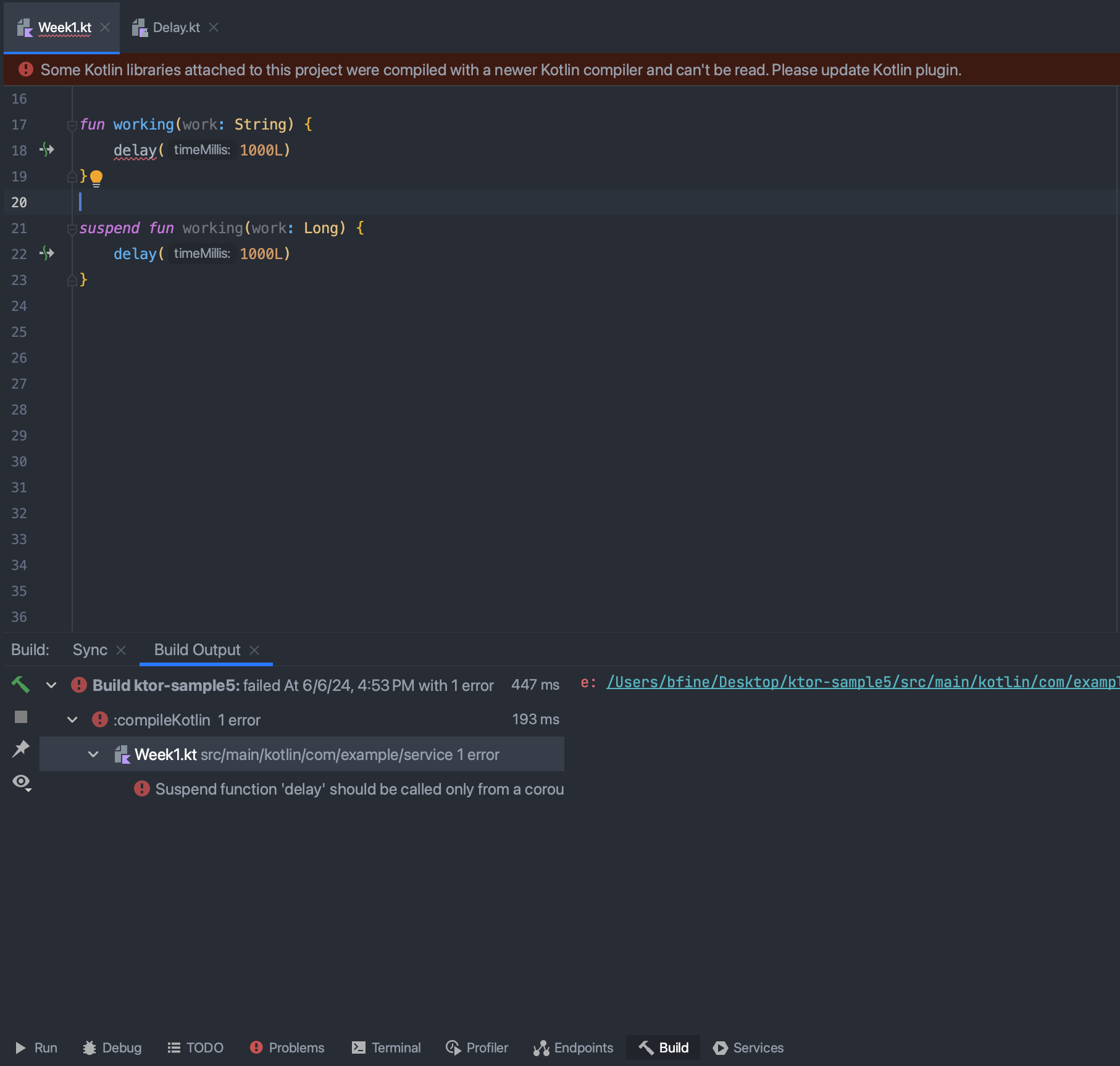 - 위의 예시처럼 suspend 키워드가 있어야 코루틴의 확장함수를 사용할 수 있다.
