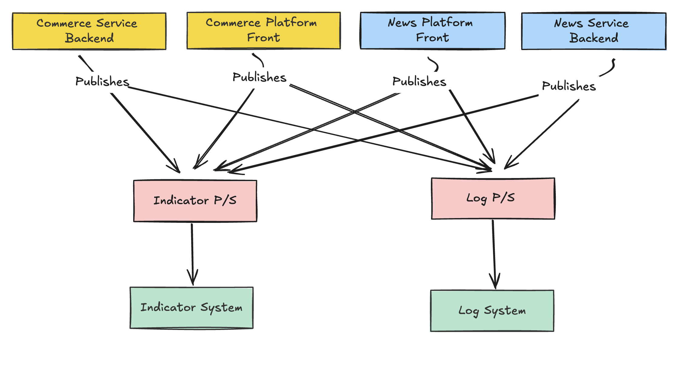 - 여기서의 문제점은 지표분석, 로그분석과 같이 다른 역할을 하는 끝단 시스템이 계속해서 추가되는 경우 중간서버도 추가되기 때문에